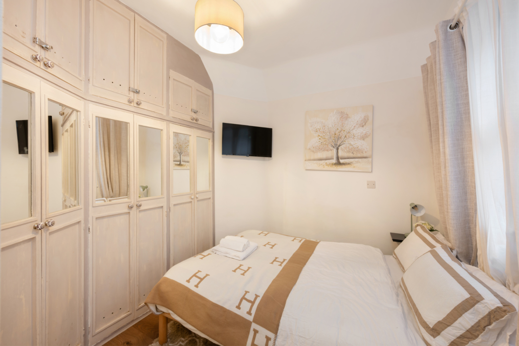 One-bedroom, one-bathroom mews house with private entrance, set on quiet Hesper Mews just five minutes from Earl’s Court station and eight minutes from Gloucester Road. The home features a bright living area with sofa bed, fully equipped kitchen, excellent storage, fast WiFi, and smart TVs. Family-friendly touches include a travel cot, toddler bed, toys, and board games, with private parking available. A peaceful and self-contained base within easy reach of Kensington’s museums, Hyde Park, and Central London.